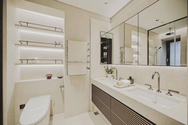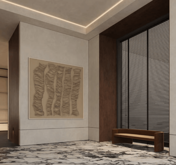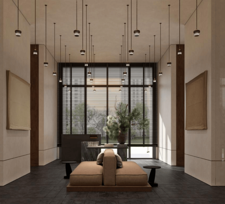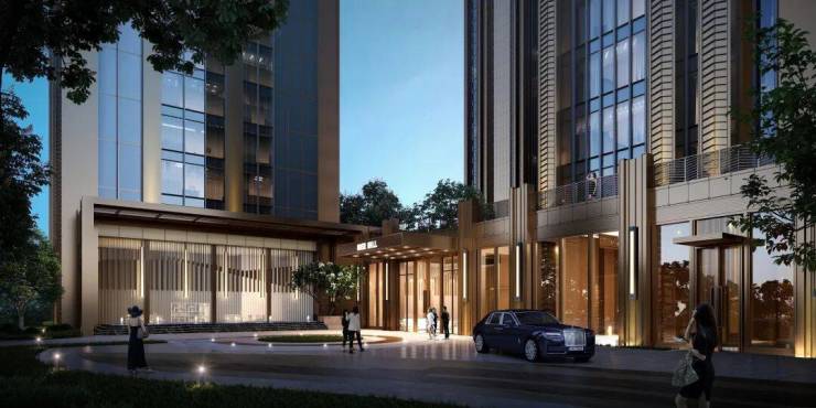 超高层住宅部分由天华建筑事务所设计打造,参考曼哈顿玫瑰峯汇Rose hill的建筑立面 ,现代简约线条搭配复古的色调形成简约高奢的风格,历久弥新。