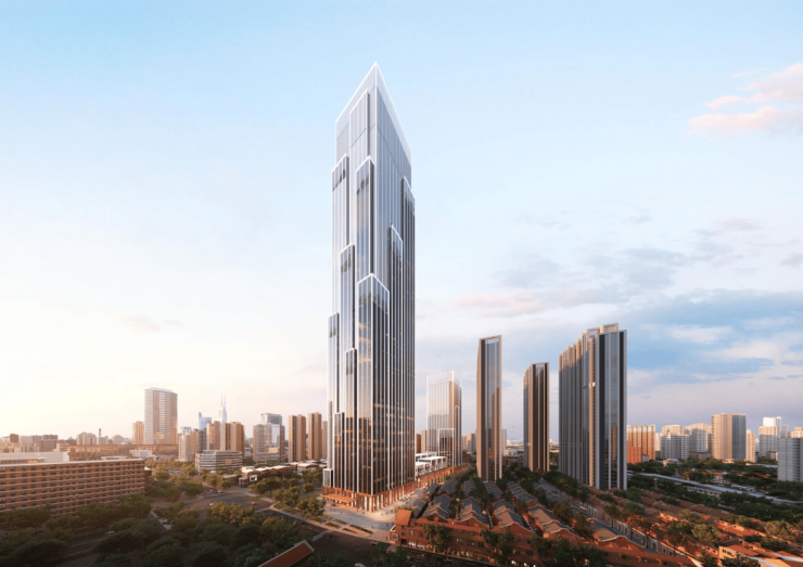 项目住宅部分由3栋超高层住宅和风貌别墅组成,同时还将配套有150-320米超高层办公和商业。因此整个项目由超高层住宅、石库门风貌别墅、办公塔楼及商业裙房共同组成的。