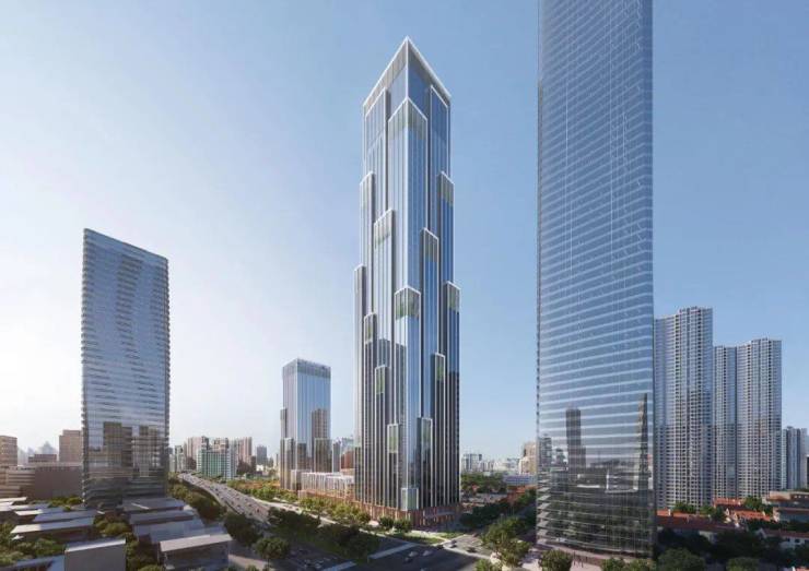 龙盛湾上实际是一个城市综合体——整个综合体名为「博懋广场」,“懋”字有积极向上、勇敢进取的寓意,代表着龙盛想要的,不止是一座城市地标,更要将其塑造为苏河湾蓬勃向上的精神象征。其中,包含一栋约320米超高层塔楼、一栋约150米副塔楼,建筑姿态挺拔向上直冲云霄,建成后将成为静安区第壹高楼,刷新静安城市天际线。