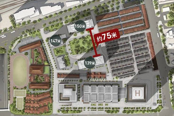 住宅部分,项目拥有三栋约139-150米的超高层住宅,以及约1.3万㎡的低密风貌建筑。