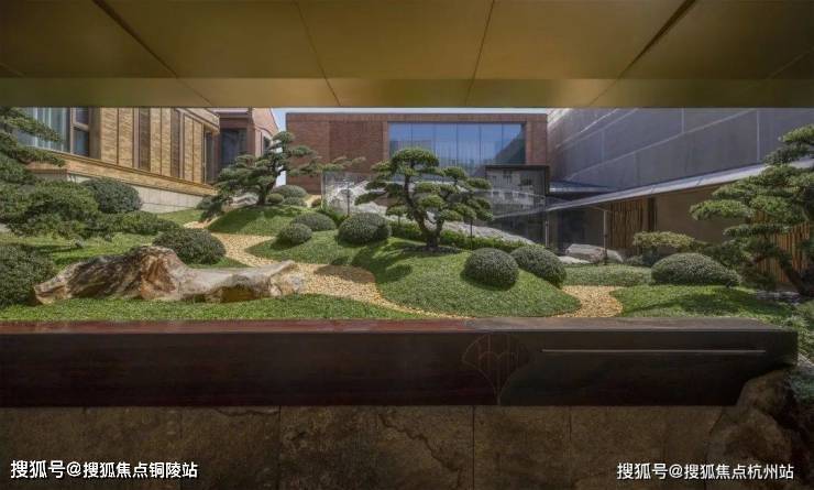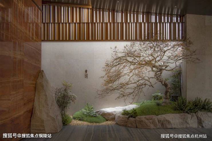 越秀外滩樾的公区庭院非常精致,其精心打造 充满禅意的山水庭院 。