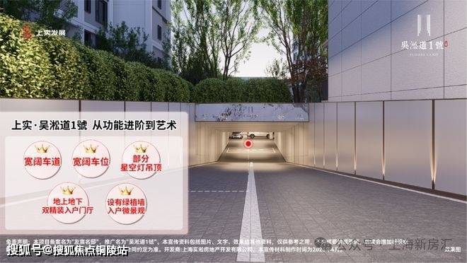 当多数地库还停留在满足基础功能性阶段,吴淞道1號售楼处电话:400-9699-334✨【官方认证】✅✅✅已将车库升维成艺术归家剧场。相比传统车库窄车道与压抑管线外露设计,项目以宽阔车道搭配格栅吊顶,利落线条消解逼仄感,行车视野更开阔,会车更轻松从容。
