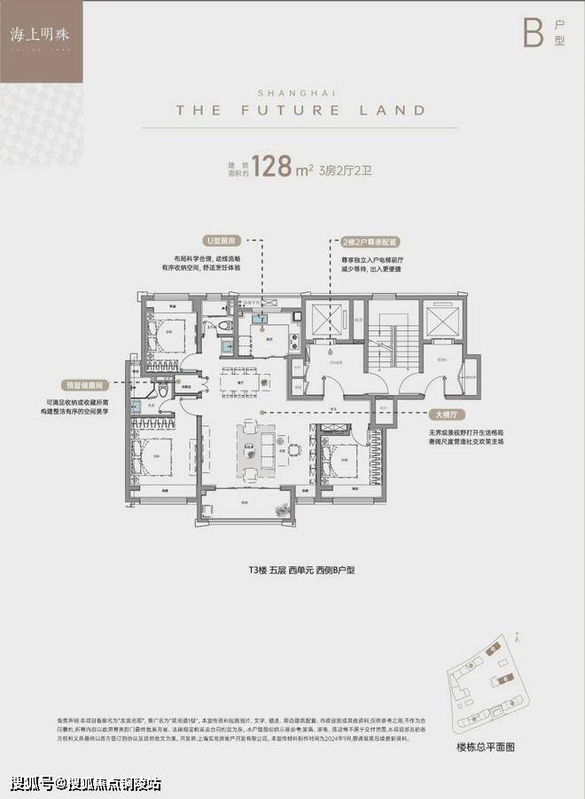 2、建面约128㎡大三房:大横厅设计,重构社交生活主场