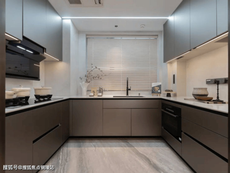 厨房采用博世厨电四件套:三眼灶台、壁挂式侧吸油烟机、15套大容量的洗碗机、大容量的蒸烤一体机。还配备日立厨房空调(具备制冷和制热功能),比市面上普通的凉霸更升一级。