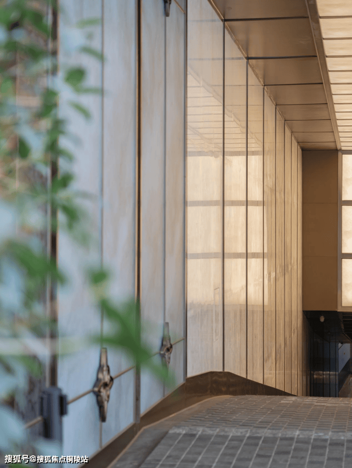 两侧墙面,则以温润的进口贝金米黄石材为基底,嵌入的透光云石玻璃如同光之泉眼。当车驶入时,感应装置悄然启动,金属线条内的追光灯带便随之亮起,打造出光影梦幻的感觉。
