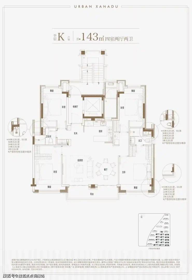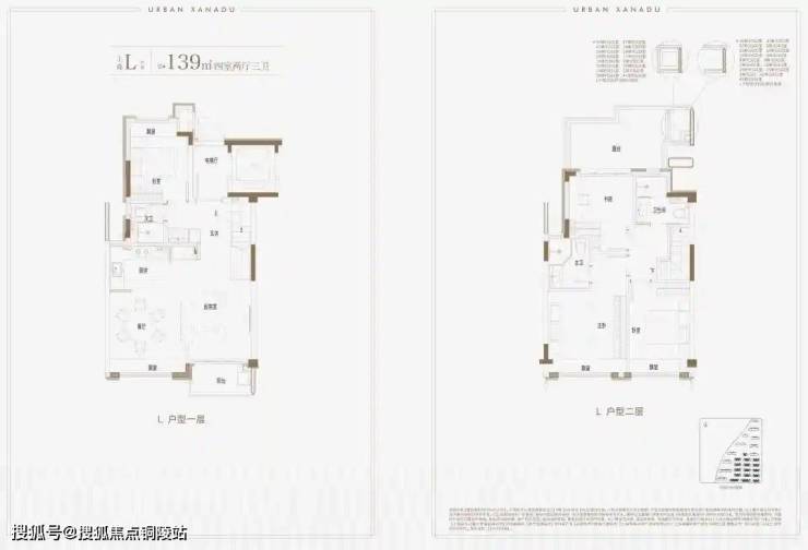 建面约139㎡上叠户型,三层是会客区,四层是居住区,阳台+露台+多个飘窗设计,附加空间非常大,在别墅类产品中实属罕见!