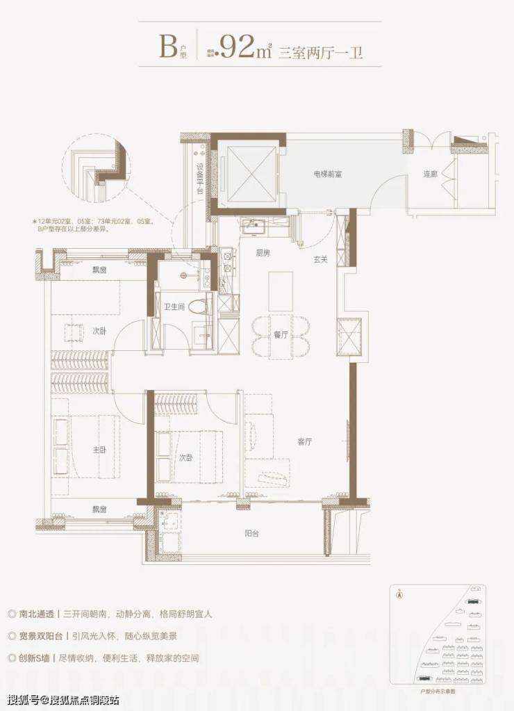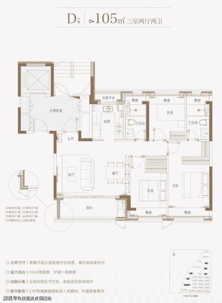 边套的餐厅、主卧和次卧,设置有多个270°全景飘窗,室内通透明亮。