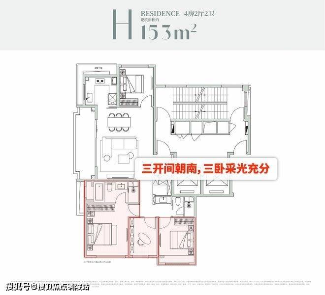 三开间朝南的格局延伸出三卧朝南的贴心设计,让阳光能充分洒满每一个居住空间。