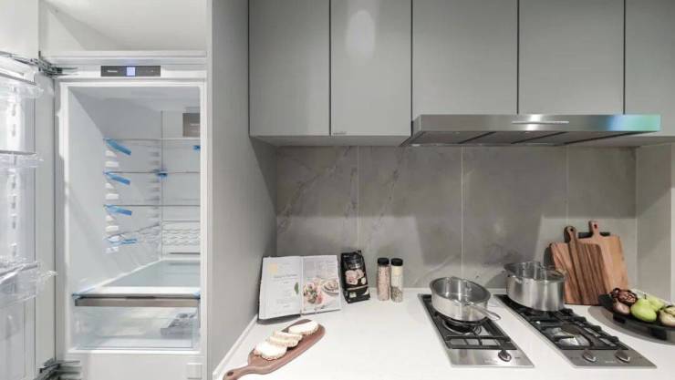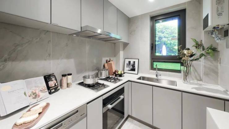 厨具方面,油烟机、灶具、洗碗机、烤箱、甚至一般不作为交付的冰箱,均采用了国际知名品牌——美诺(或同等档次),这样的五件套配置放眼全市豪宅都非常罕见。