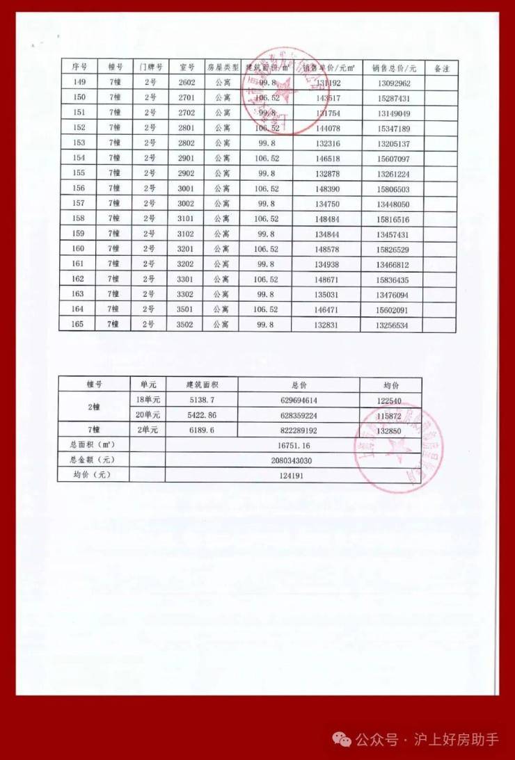 均价124191元/㎡ 共165套