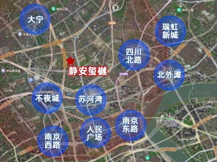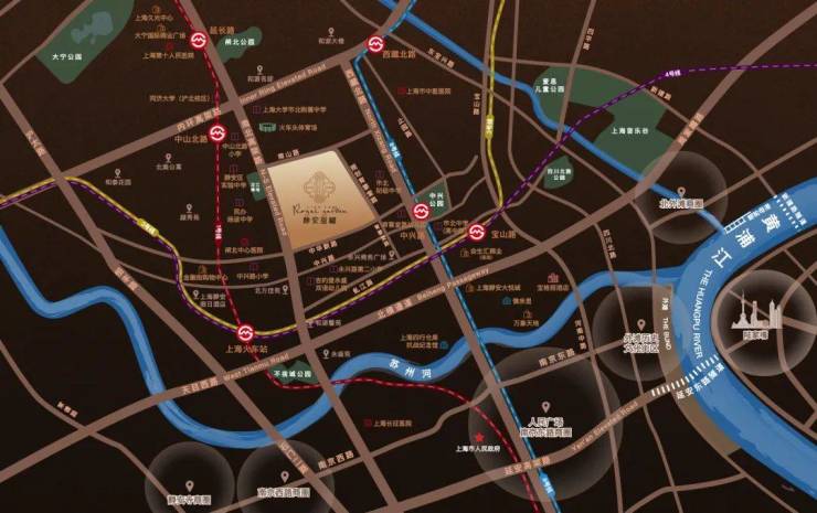 项目直线距苏州河约1.5公里,直线距黄浦江约3公里。3公里范围内,能够享受苏河湾、人民广场、外滩、北外滩、大宁等浦西九大核心商圈的资源,生活便捷程度显而易见。