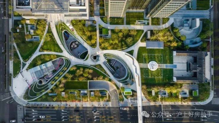 整个景观设计,按照“翡光礼境”的概念,不是硬生生地塞进社区中,而是做到了与水景、雕塑、绿植一起,体现未来住区的海派生活气质。