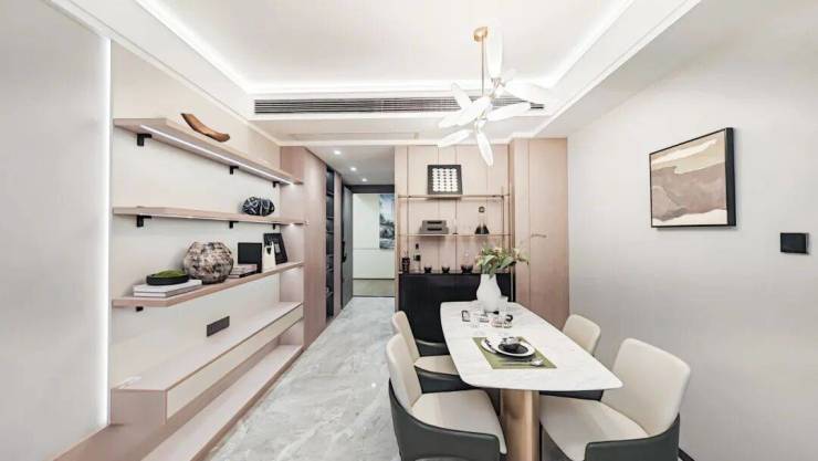 第三个亮点,是客餐厅一体化设计,外连阔景阳台,采光非常好,空气更加流通,同时增进了家人间的互动。