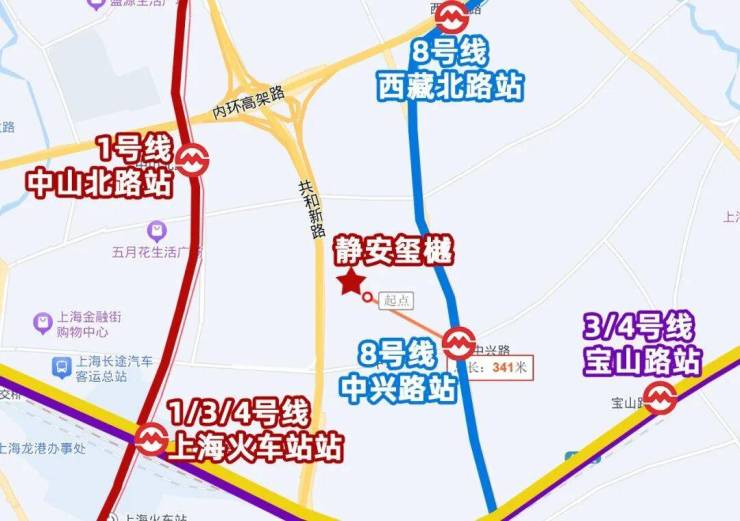 8号线中兴路站距离约330米