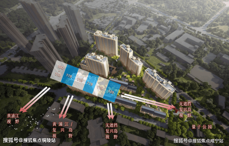 未来从小区侧门就能直接进公园,于业主,不仅多了个休闲天地,更相当于“降低了项目实际居住密度”,东侧视野开阔,还能和复兴岛景观无缝衔接。