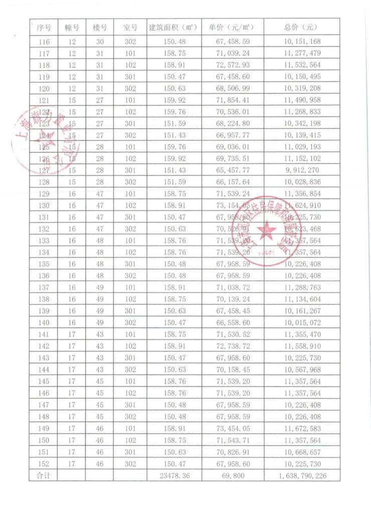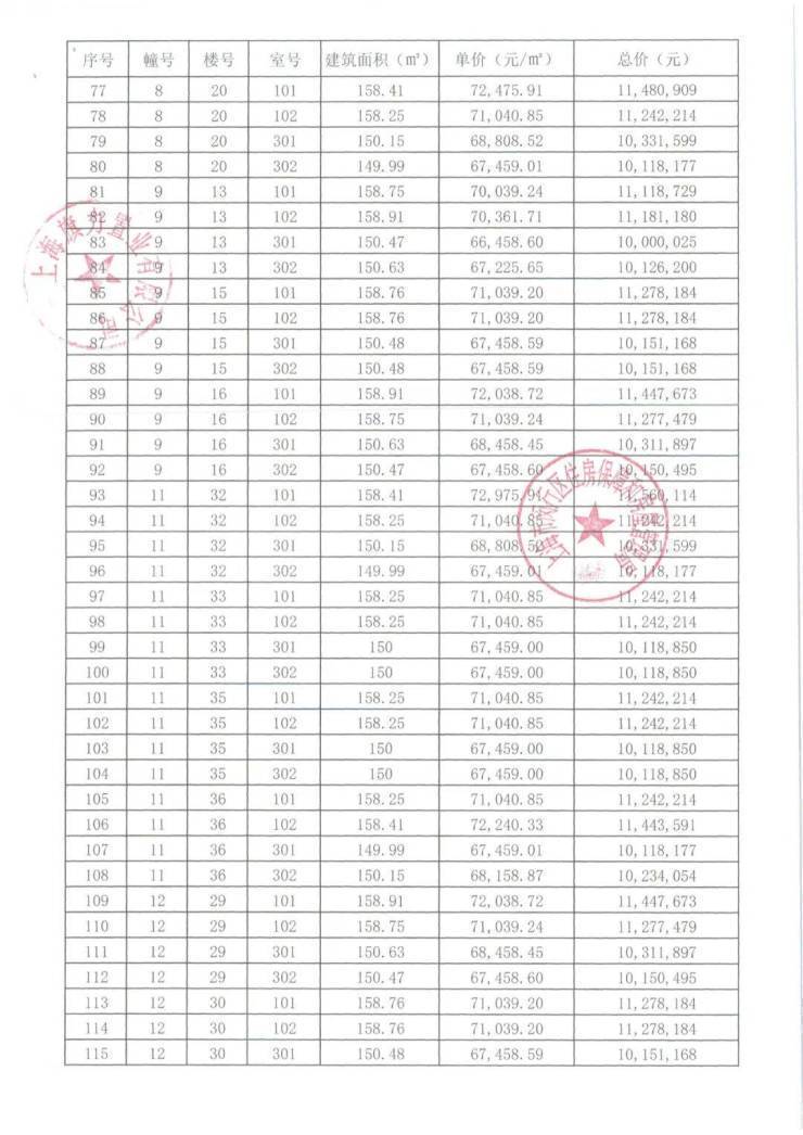 崇明某触发积分项目部分一房一价表