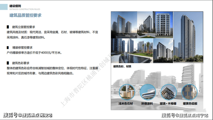 在2022年第二批土拍名单亮相之前,桃浦智创城规划展示馆路演中心,就举办了一场土地推介会,当时就公布了地块对于住宅建筑立面管控标准和展现精品化住宅定位的要求。