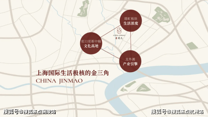 金茂璞元落子上海虹口区瑞虹新城核心区,精准占位外滩-北外滩-陆家嘴黄金三角辐射圈,距黄浦江仅约八佰米,是瑞虹新城30年城市更新的收官巅峰之作,兼具成熟配套与发展红利双重加持。