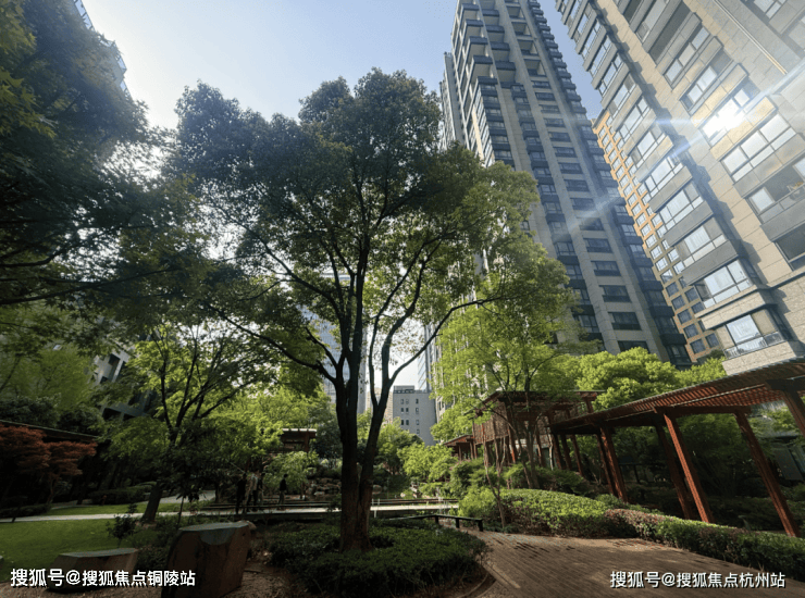 社区中间位置分有四块绿化地,分别为:映月亭台、枫林广场、曲径散步道及南北花廊。园林采用东南亚安缦风情。整体设计疏密相间、层次错落。