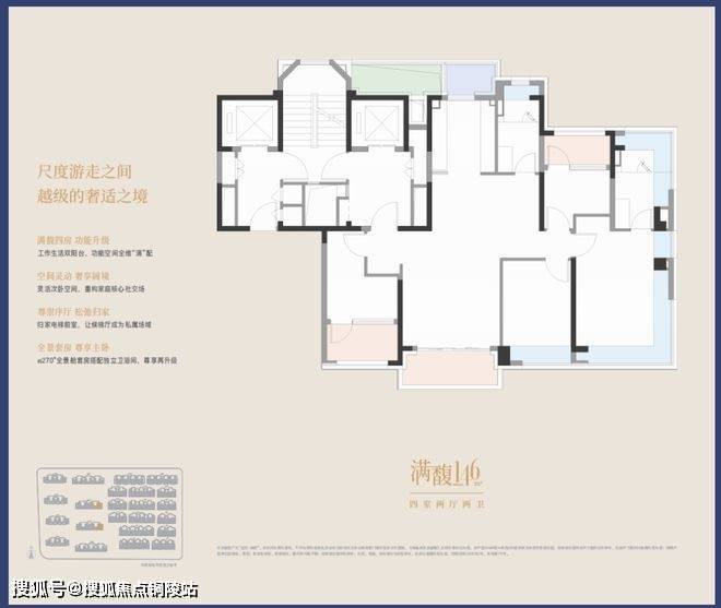 四房功能性够强,且主卧为270°全景舱套房,配备独立卫浴间,舒适度与私密性双爆表!