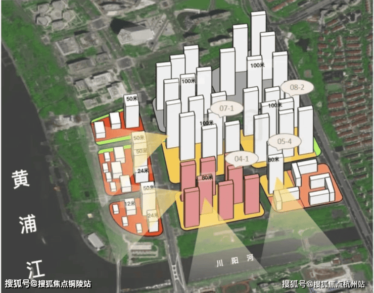07-1地块拟建9栋25-32层高层住宅,04-1地块拟建11栋16-27层高层住宅,产品建面约125-510㎡平层&复式。