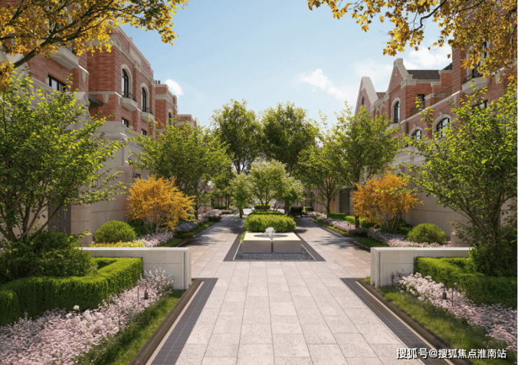 联排别墅采用经典优雅的英式维多利亚建筑风格,红砖与德国米黄干挂石材的搭配,这在上海今年的新房供应中相当少见。