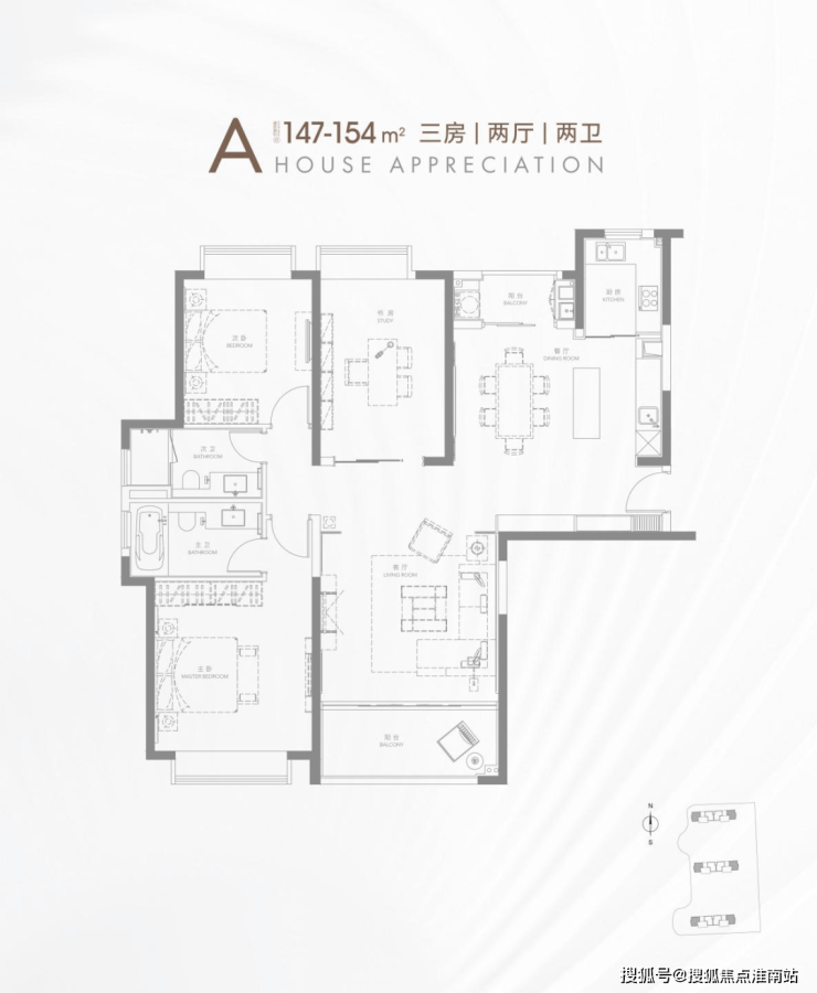 三卧全飘窗+主卧套房+南北双阳台,极尽享受。