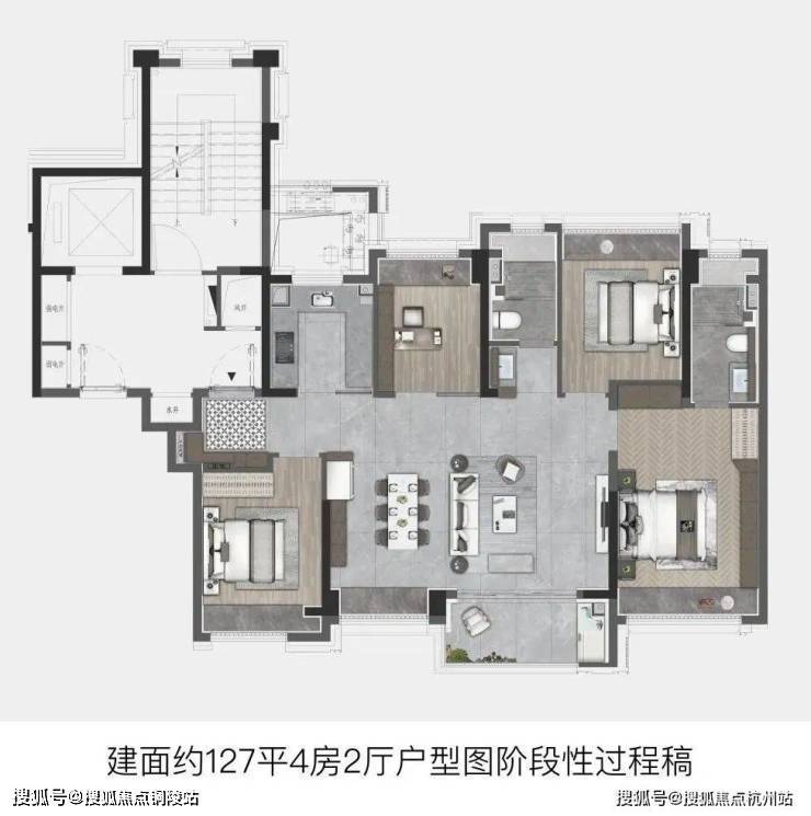 建面约127㎡直接进阶4房,功能性拉满,适配当下越来越多的二胎或三代同堂家庭。