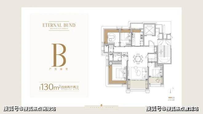 我们来看首推的约130㎡户型,这个面积段的四房产品,很容易面对多个房间分隔,导致空间零碎,或者部分房间不实用的问题。