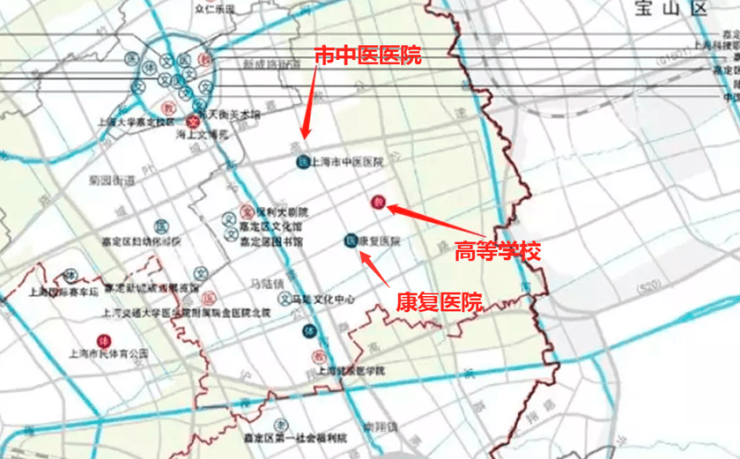 医疗方面:嘉定区中心医院、嘉定妇幼保健院、上海中医医院(在建中,具体以政府规划为准)等知名全系医疗资源加持,7X24小时护佑健康。