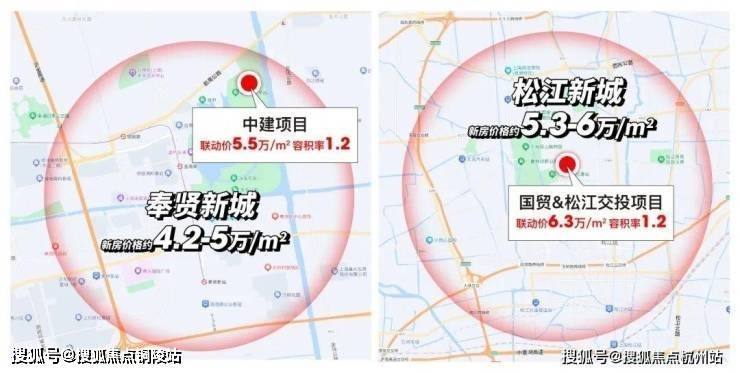 比如奉贤新城均价普遍在4.2-5万/㎡,而容积率1.2的中建项目联动价高达约5.5万/㎡;