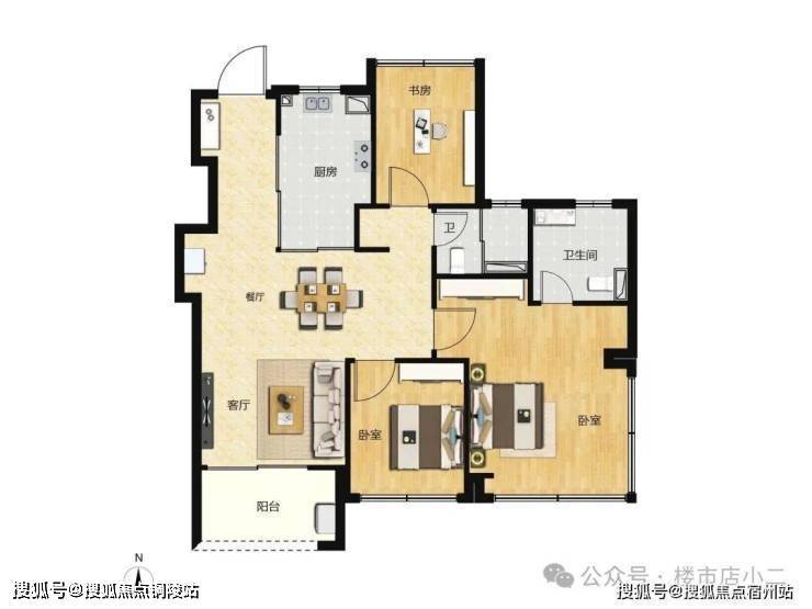 特色:三开间朝南,整体面宽达到了约9.8米。这个面宽比例在同面积段里非常能打。主卧是套房设计,保证了主人的私密空间。
