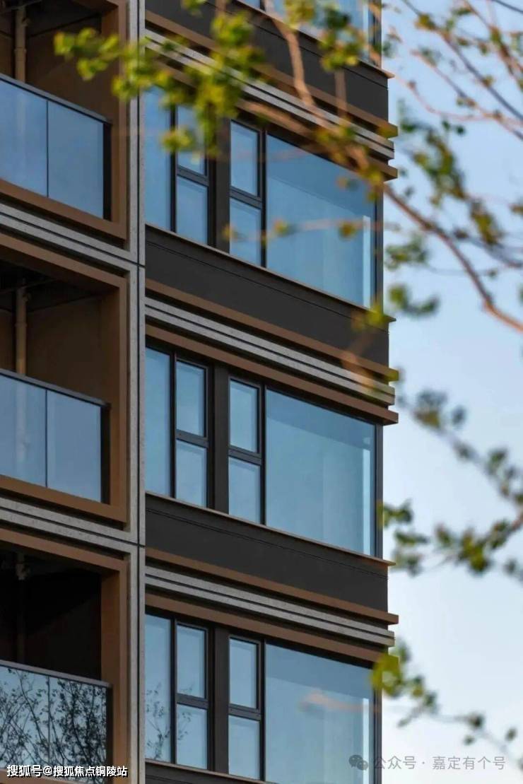 立面通过简洁的横向构图,大面积玻璃运用,呈现通透的光感效果,强调室内室外空间的融合、让建筑与景观互相呼应。局部金属线条装饰点缀,在光影的折射下,呈现出时间淬炼的美妙观感,映见轻盈雅致的艺术品位。