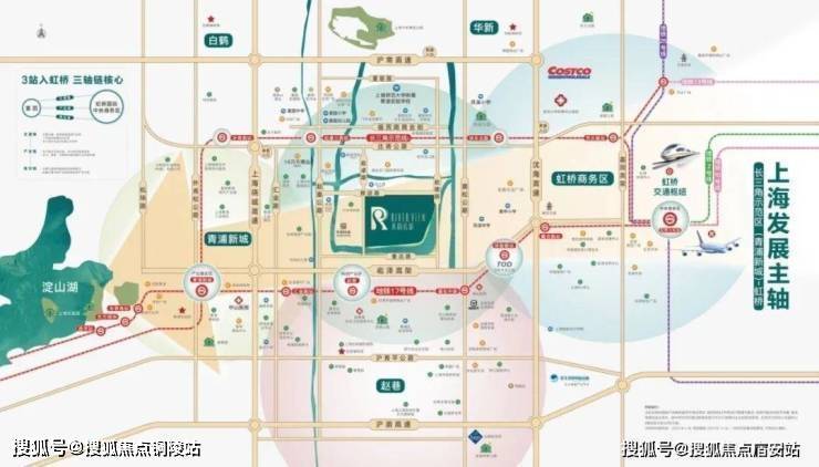 轨交17号线:项目距赵巷地铁站约2.3km,6站直达大虹桥交通枢纽