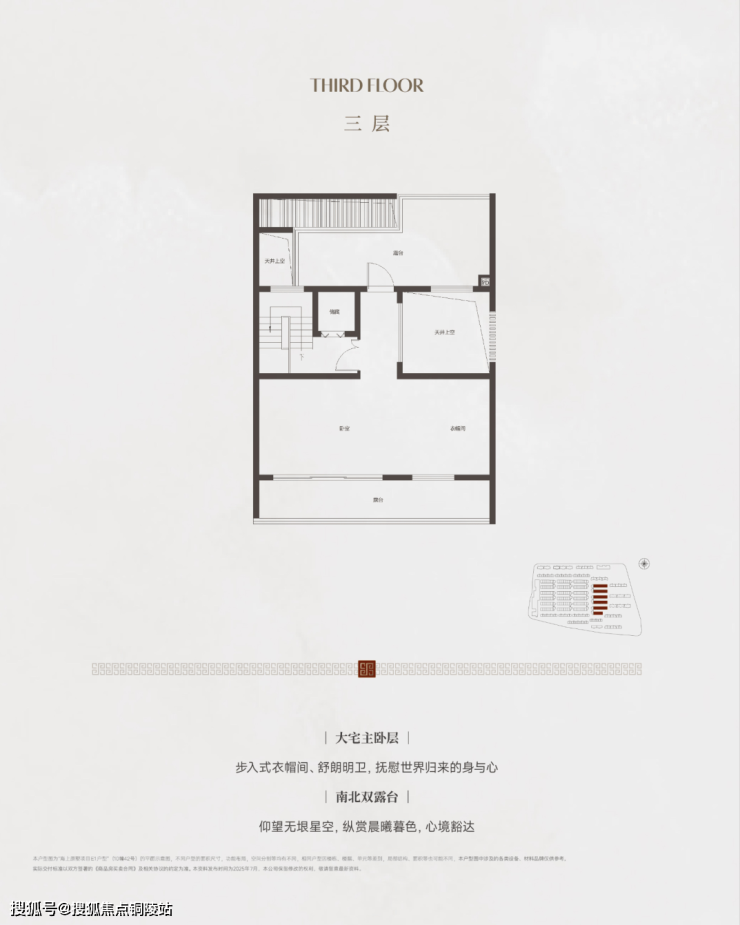 三楼整层主卧是主人的松弛结界,南北双露台藏着生活的诗意。南露台摆上茶台,晨雾中眺望佘山轮廓;北露台支起望远镜,深夜与爱人共赏星空。步入式衣帽间细分常服、礼服与户外装备区,琐碎日常也能井井有条。