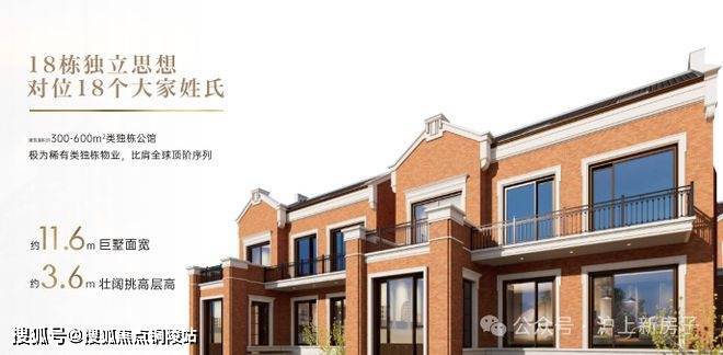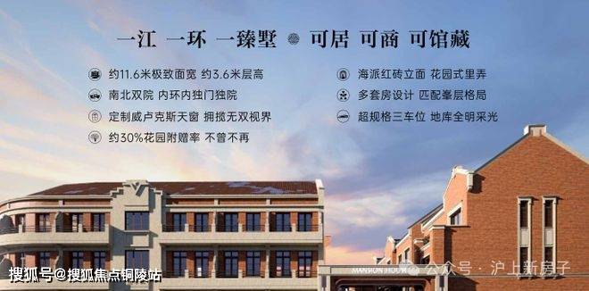 建筑风格融合现代美学与海派建筑风格,外立面复刻老上海里弄肌理,红砖墙面搭配雕花窗棂,庭院深深,还原出 “海上名园” 的独特意境。户型设计上,约 11.6 米的巨墅面宽,气派非凡,堪比五星级酒店大堂;最大约 289㎡的南北双院,满足业主种植花草、休闲娱乐等多样化需求。