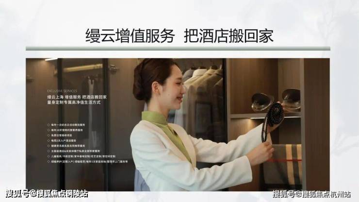 在深入研究全球各地的顶级寓所与奢华酒店之后,缦系无边际服务体系应运而生 ,包含280余项细则,建立在时间、空间、私属三个维度之上。除了无边际基础服务之外,缦云上海还为业主增设了「至善无痕」的私属增值服务,6大类27项内容,真正实现了酒店管家式服务体系与标准在住宅社区的落地。 包括每年一次专属晚宴和纪念日活动策划服务,每周2次入户保洁服务,每年1次家庭收纳,每年10天宠物托管寄养服务,儿童校车点接送、43项免费日常维修项目,健康咨询类名医名院推荐服务等等,真正做到前置化、丰富化、创新化客户的生活需求。
