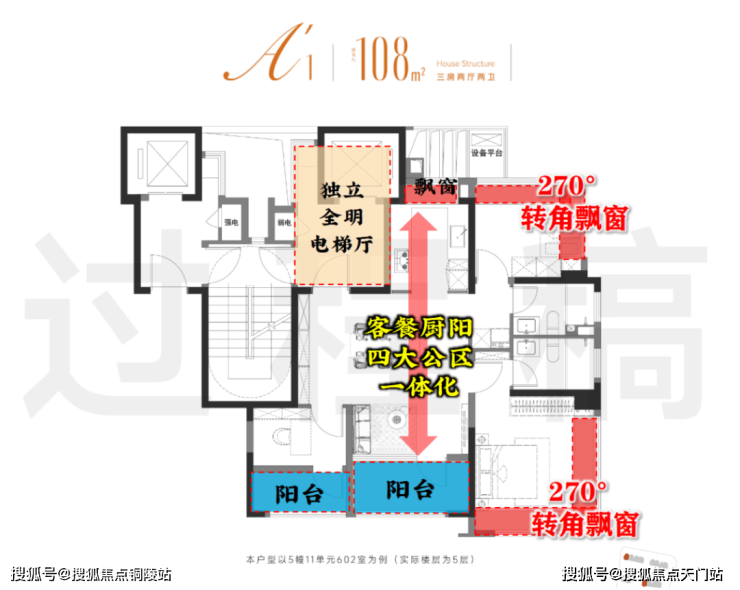 值得一提,当很多豪宅还在用转角飘窗打动客户,项目却在这个500w级新盘上拿出南北双270度「全景舱户型」。