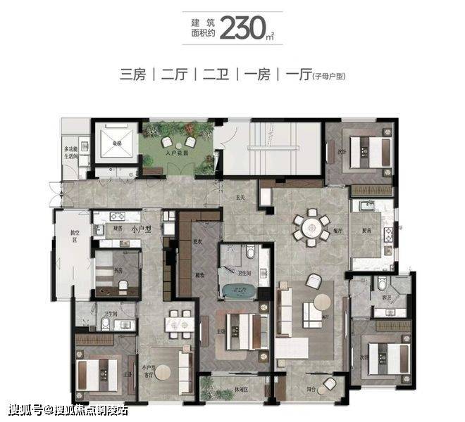 230㎡子母户型3房2厅2卫/1房1厅1卫▼