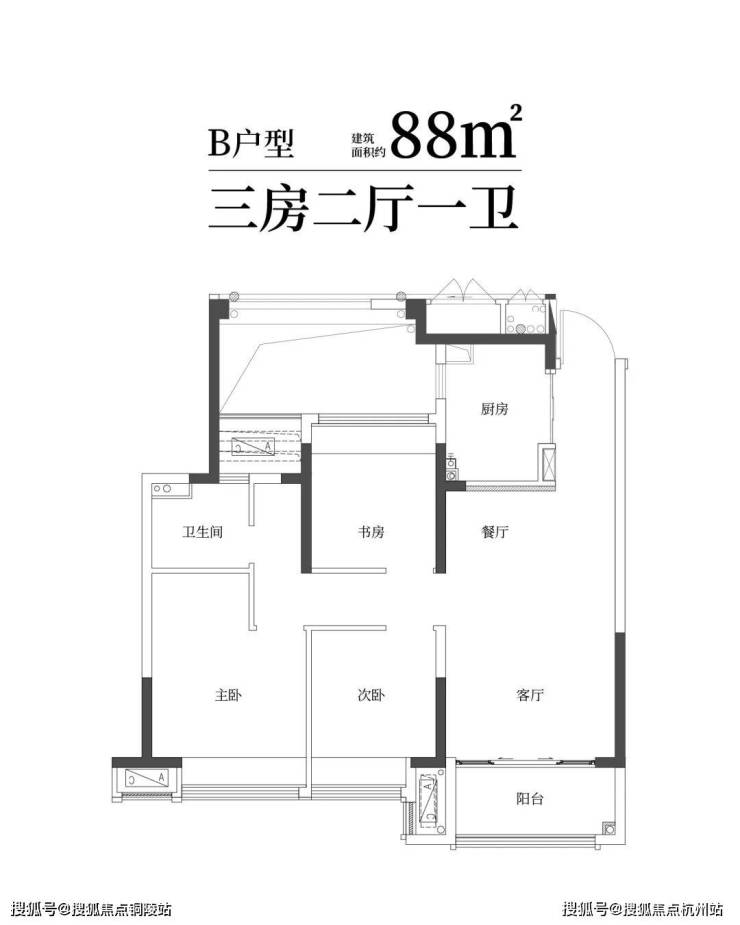 建筑面积约88㎡精雅三房一卫,三口之家理想;