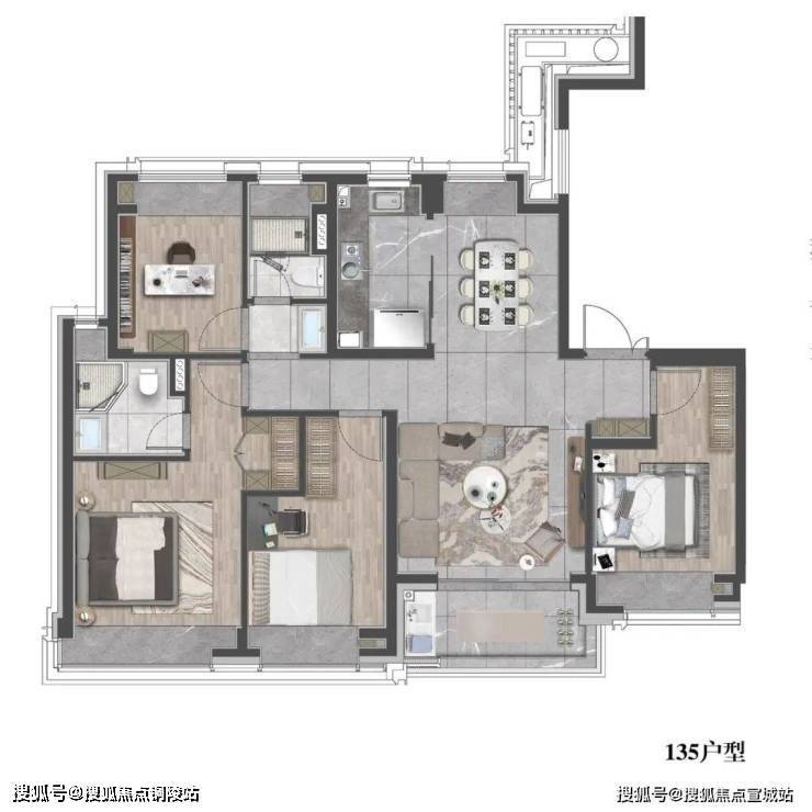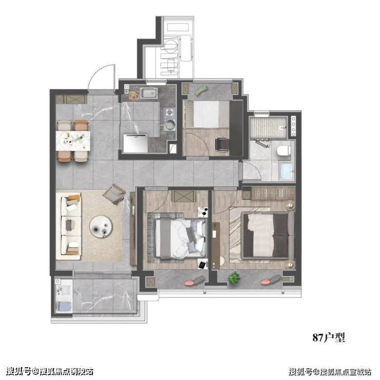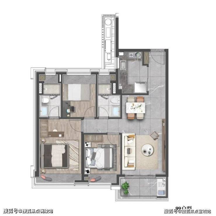 三进:尊享水苑-入户门庭仪式水景;下沉会所-私享品质生活;社区会客厅(约20m²)-度假式摩登私享泛会所。