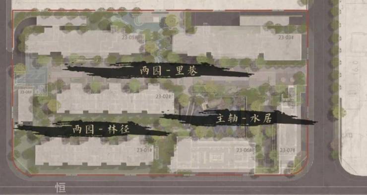 两园:里巷和林径是项目的两个特色园区。里巷延续上海曲径通幽处的回忆,形成功能丰富的归家礼仪空间;林径对上海梧桐栖路的重温旧梦,营造一条宁谧、和煦的归家小径。