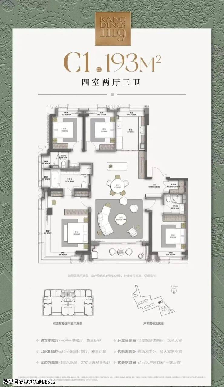 193㎡户型完全就是豪宅的大尺度! 保守的说, 可以跟市面上几乎所有230+㎡户型对标!目前193户型已售罄,还有少量177-183-238户型可选
