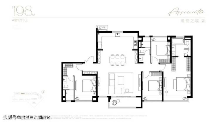 终极改善的顶奢4房!极端宽奢的南北通透户型飞机户型,你能想象到的美好都能在这个户型中体验到。