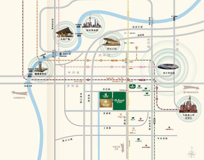 【绿宝园】位处康桥别墅区核芯位置,距中环线仅约3.5 公里,紧邻S20, 紧邻地铁18号线康桥站。驾车可快速直达前滩、陆家嘴、张江,与迪士尼、外高桥、临港自贸区等浦东主要CBD。