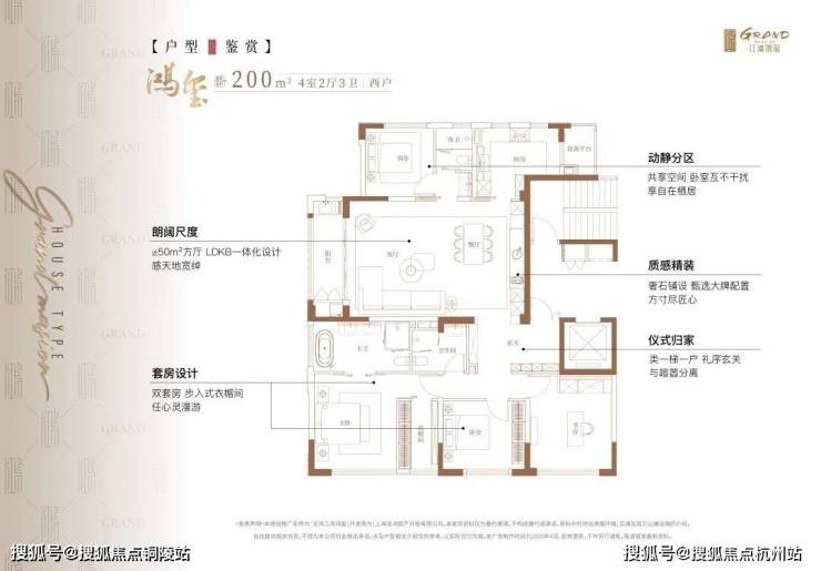 户型设计上,类一梯一户,方厅近50㎡,主卧超级套房。