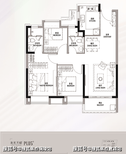 「龙光天曜」在户型设计方面也是下了很大的功夫,在保证户型方正的基础上,通过对住宅内部功能空间结构的科学设计,尽可能创造更多南向空间。