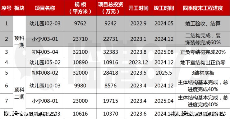 顶科社区公建配套学校建设计划:上实•听海毗邻的J10-3地块幼儿园计划24年12月竣工,J08-01小学和J08-02初中分别计划在25年4月和5月先后竣工。