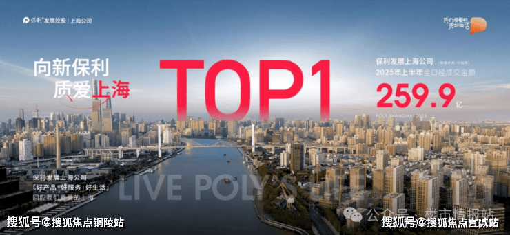 2025上半年度保利上海发展公司斩获259.9亿成交金额,冠冕上海Top1江湖地位。这份成绩单背后,是保利发展与上海的韬略共进。(数据来源:中指院)