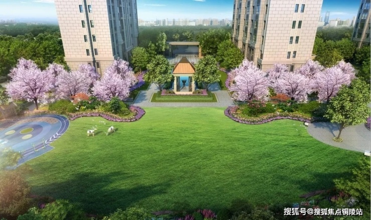 在社区主轴,招商打造了围合式草坪区,并设置休闲平台及会客空间。